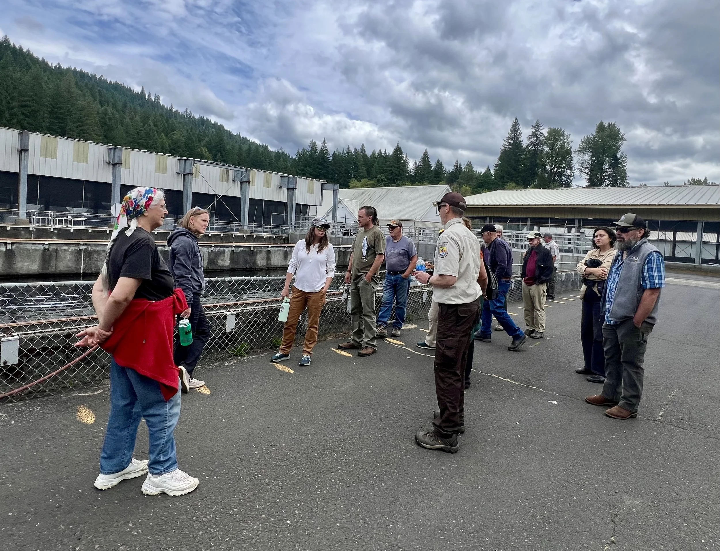 This field trip featured a tour of the Carson National Fish Hatchery led by Larry Zeigenfuss, hatchery manager. This involved hearing about the hatchery’s formation, salmon recovery efforts and associated management practices, and how the hatchery faces and overcomes various challenges such as fish depredation, funding uncertainties, and staffing.