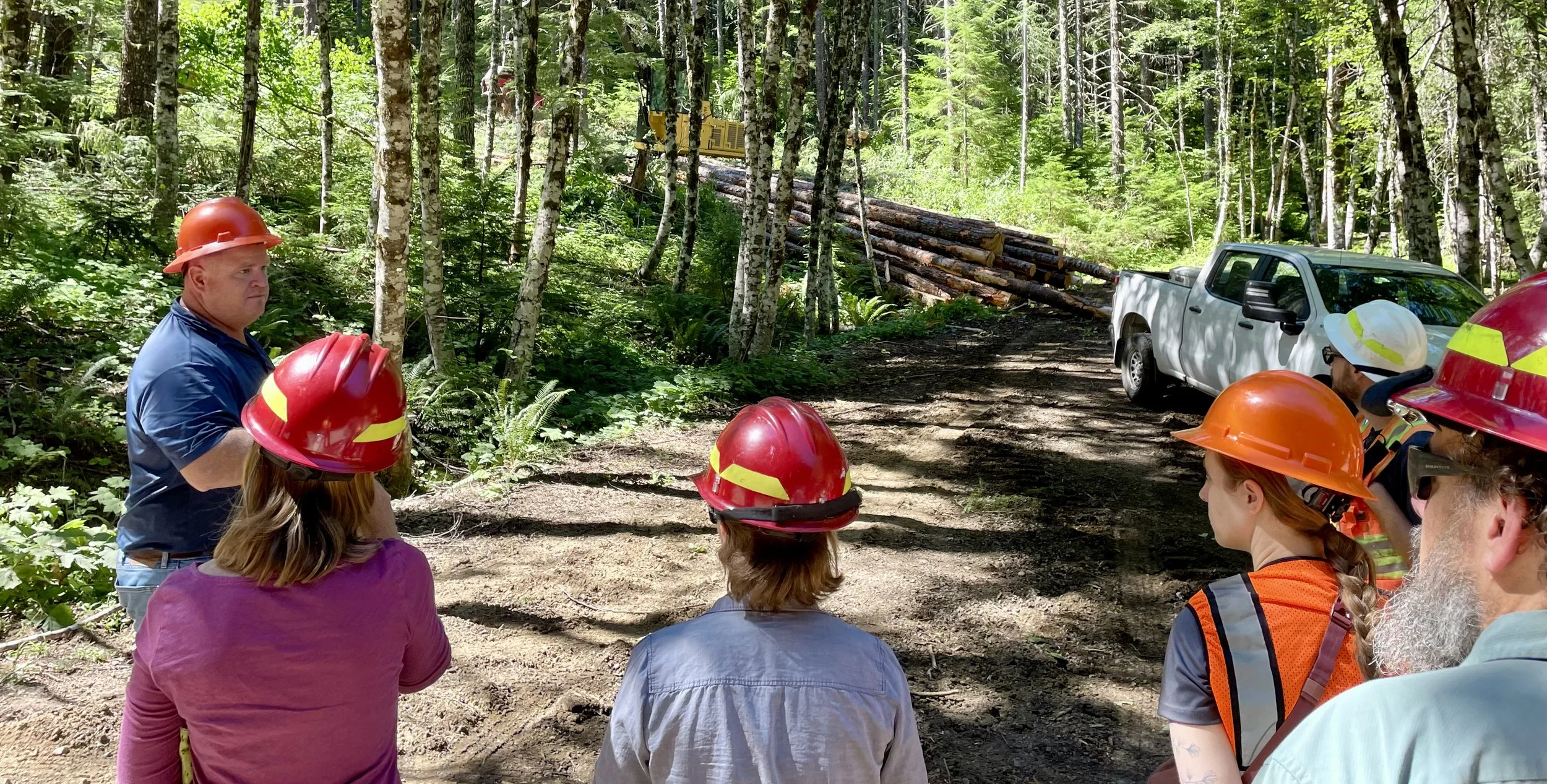 This field trip featured a tour of High Cascade’s active logging operations and was led by Jon Paul Anderson of High Cascade, a longtime SGPC member. Those in attendance enjoyed stops to observe a thinning unit as well as the ins and outs of wood processing. The group also discussed and flagged the process of tethered logging for future collaborative discussions.